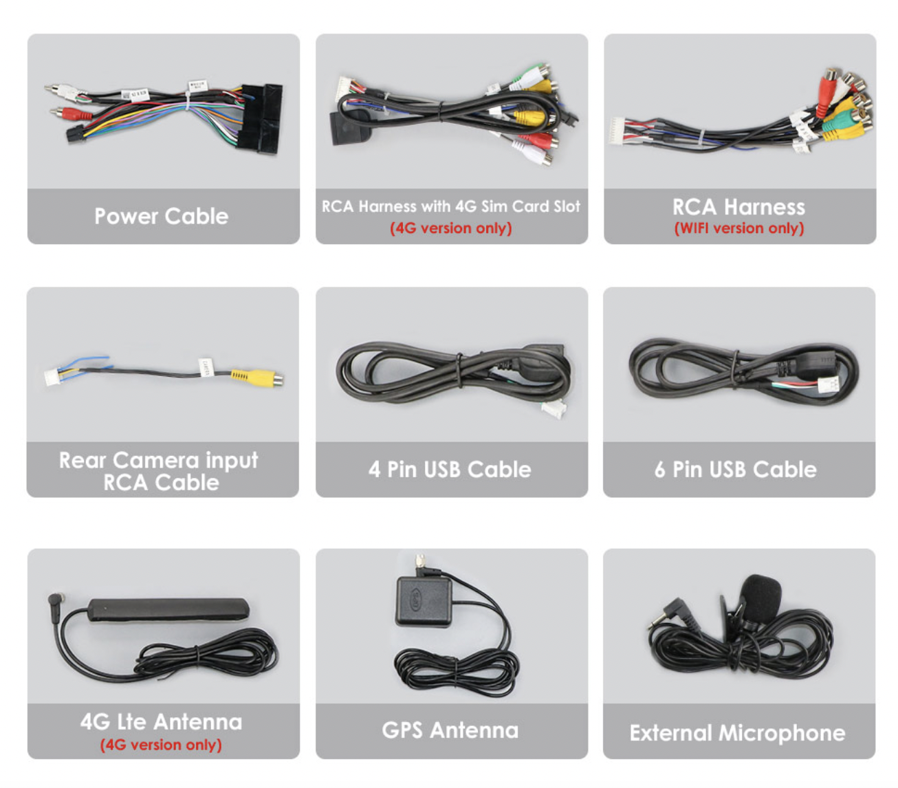 Standardně dodávaný kabel v balení není možné použít pro instalaci ve vozidlech s tovární navigací či tovární parkovací kamerou.
