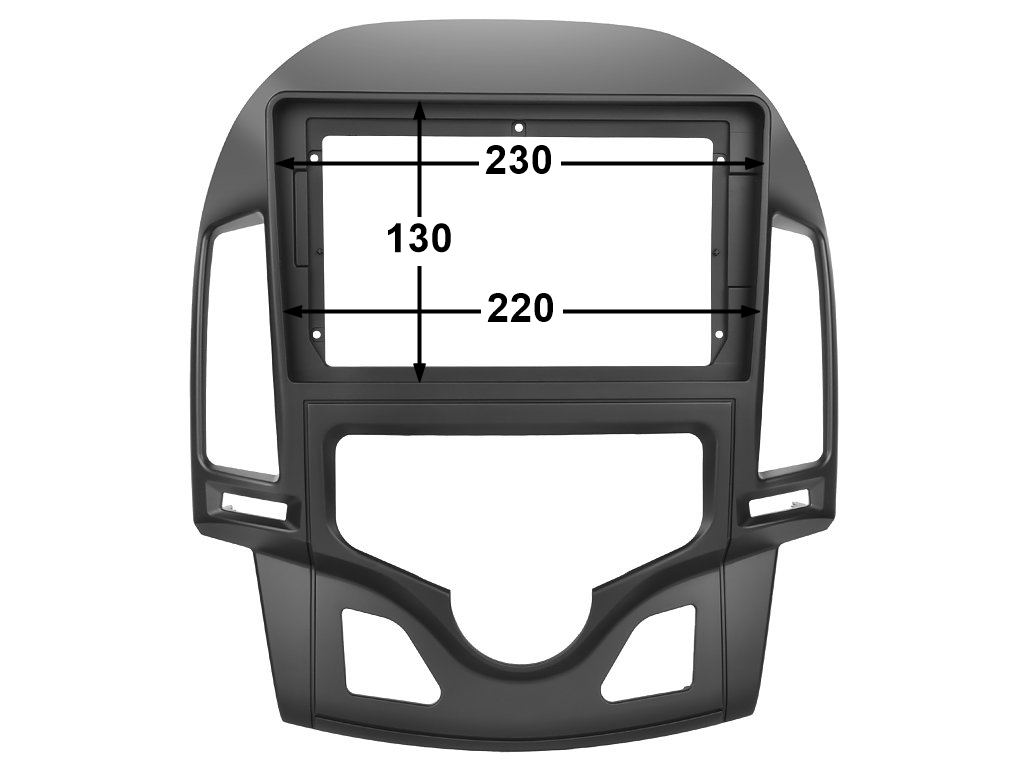 Plastový rámeček je vhodnou variantou pro všechny, kteří se rozhodli vylepšit si svého Hyundai i30 s automatickou klimatizací novým rádiem. Rámeček dokonale padne každému, který si zvolil 2DIN autorádio s velikostí displeje 9 palců.