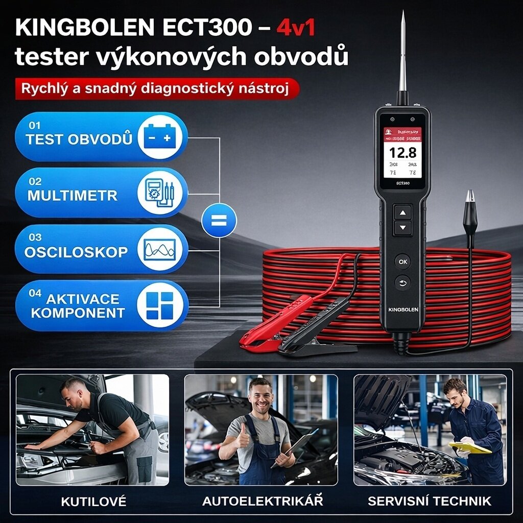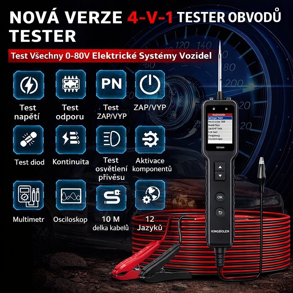 Víceúčelový tester/měříci přístroj automobilových elektrických obvodů slouží k širokému rozsahu autoelektrikářských prací.