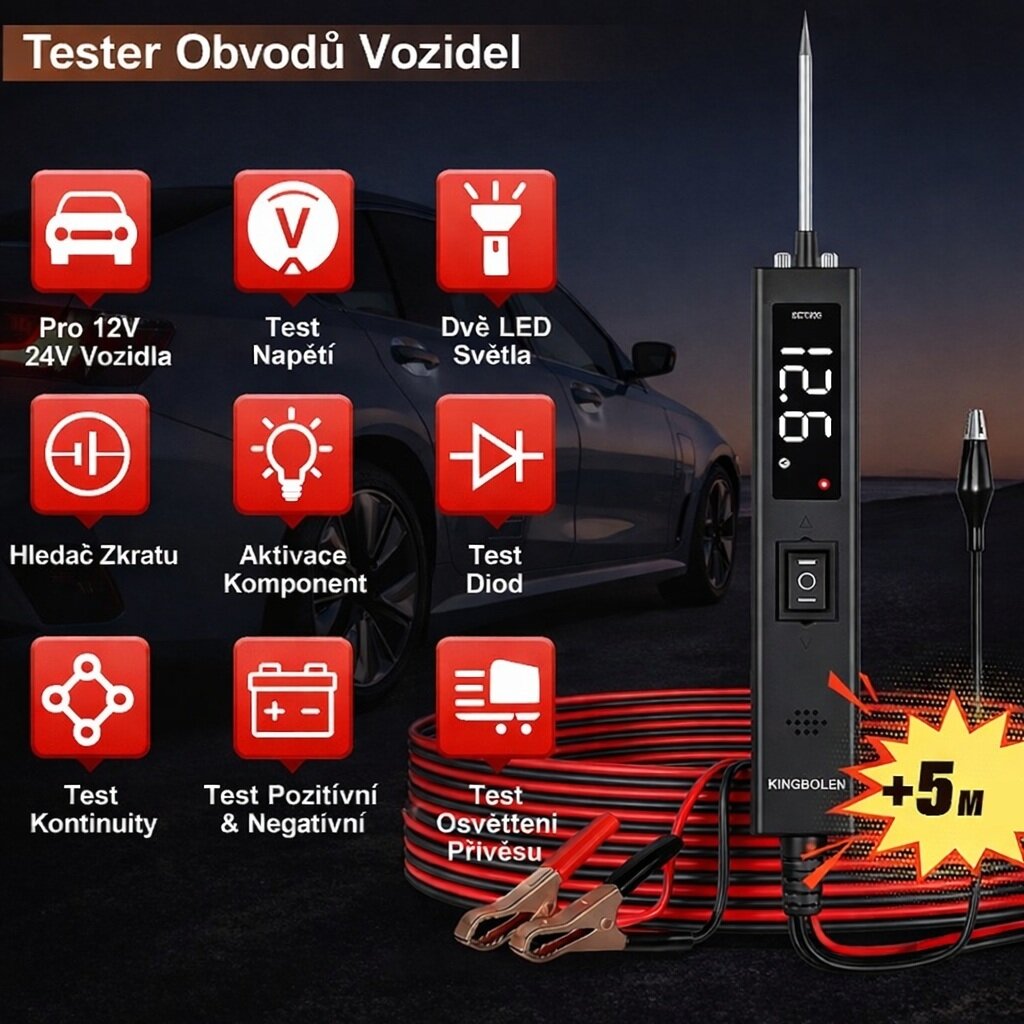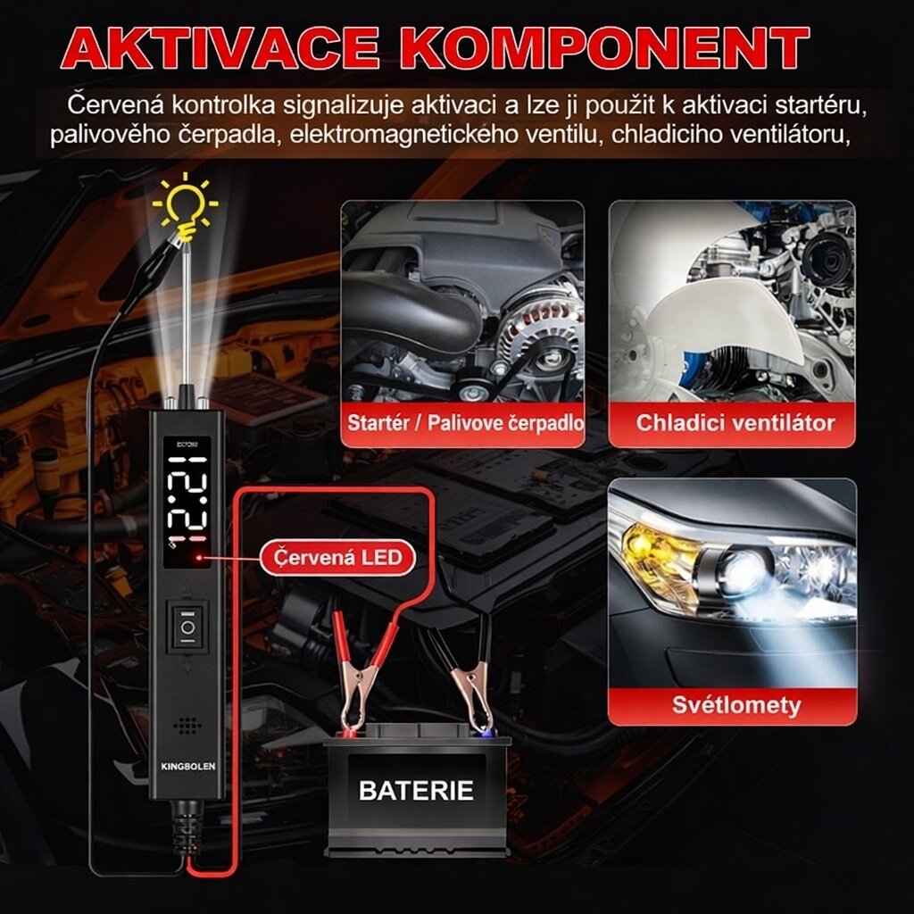 Víceúčelový tester automobilových elektrických obvodů slouží k širokému rozsahu autoelektrikářských prací.