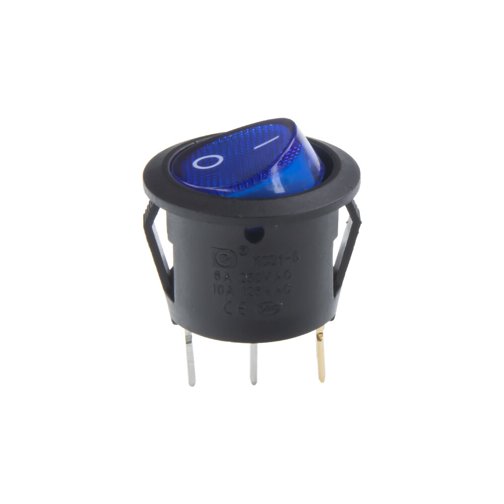 Spínač kolébkový kulatý 20A modrý s podsvícením 47070b