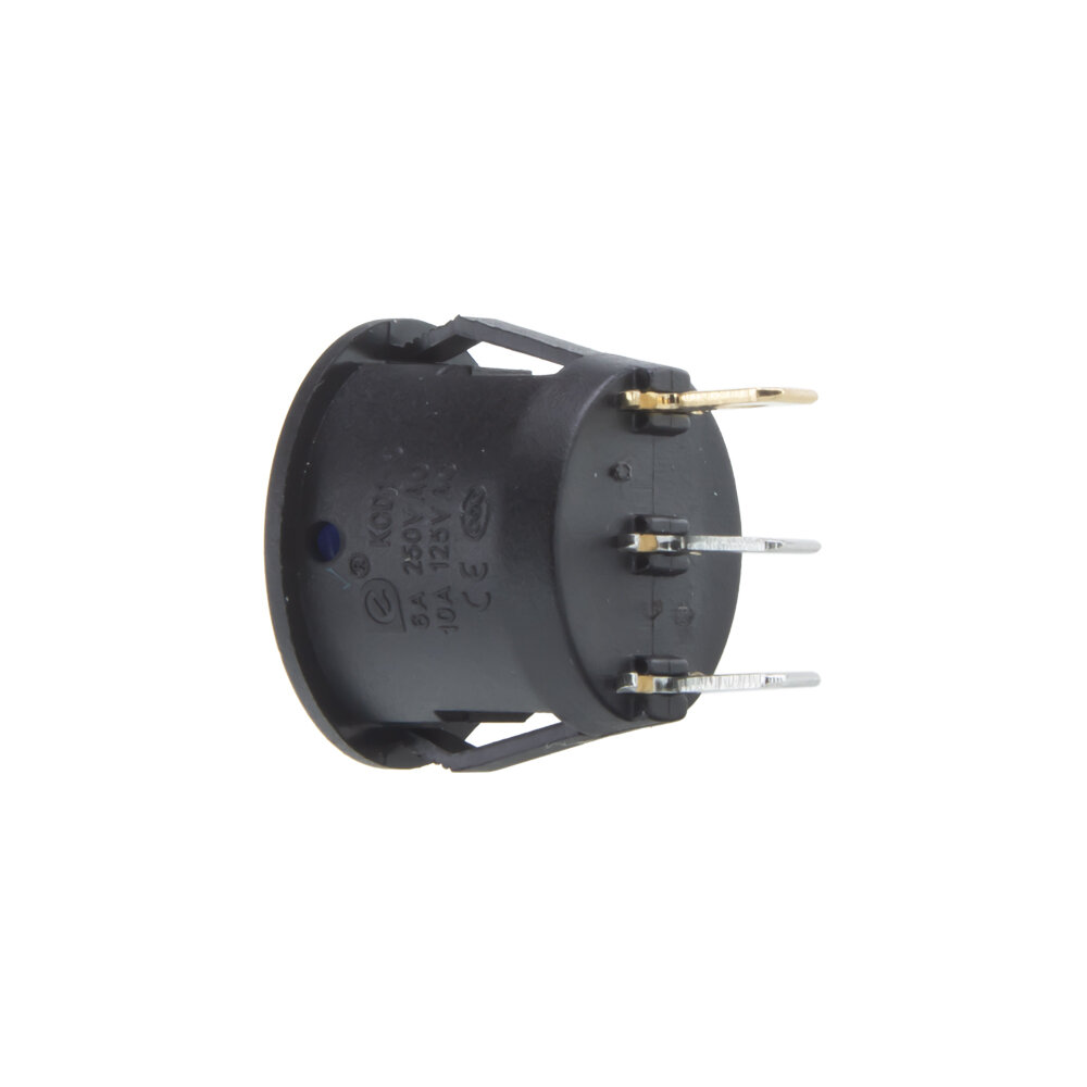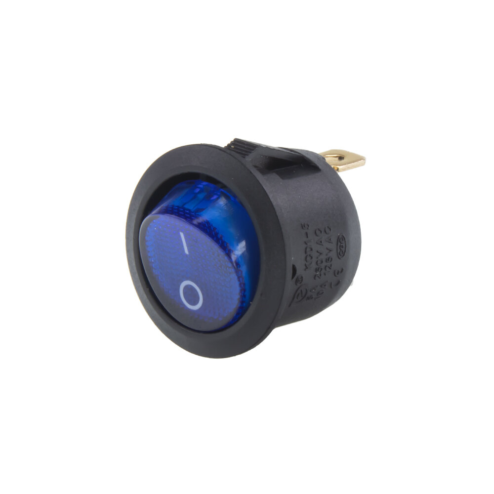 Spínač kolébkový kulatý 20 A modrý s LED podsvícením, průměr otvoru 20 mm, pro napájecí napětí 12 V.